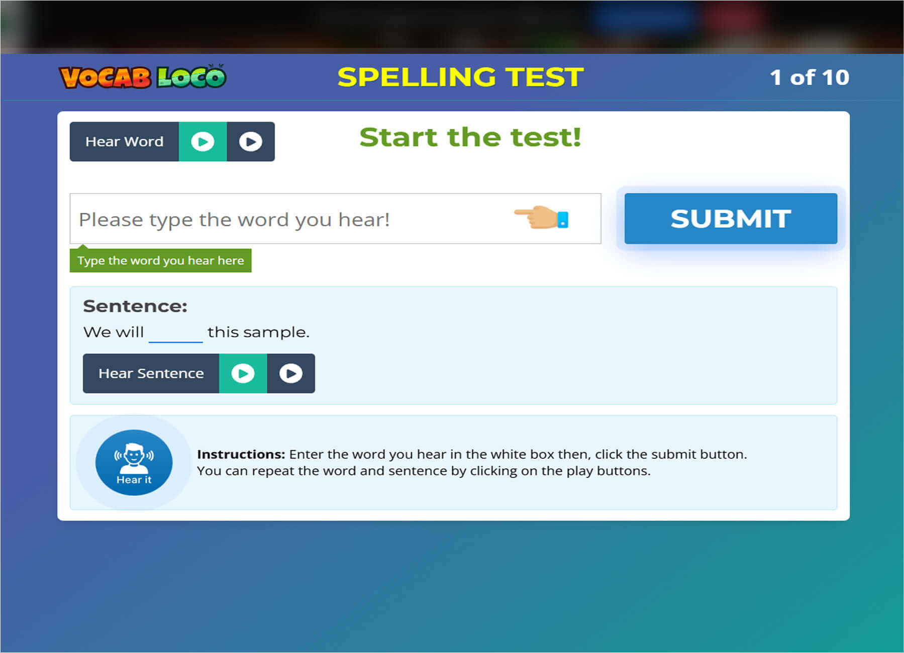 Vocab Loco’s Vocab Beats module turns vocabulary practice into a musical adventure. Students listen to custom songs that incorporate words from their assigned word list, transforming language learning into a fun and rhythmic experience.